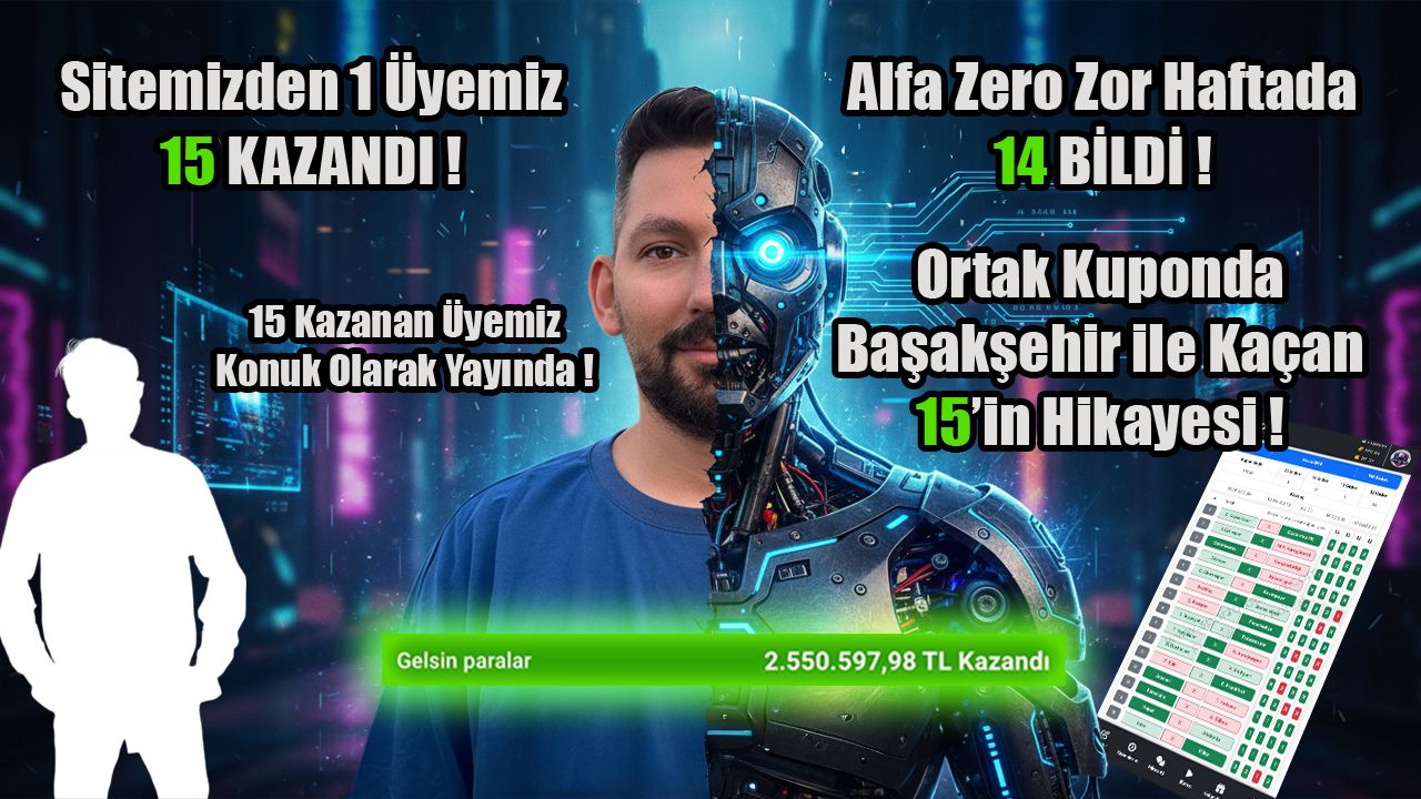 Sportoto için özel geliştirdiğimiz Yapay Zeka analiz programıyla 15 adet çift tercihine ulaşacaksınız.